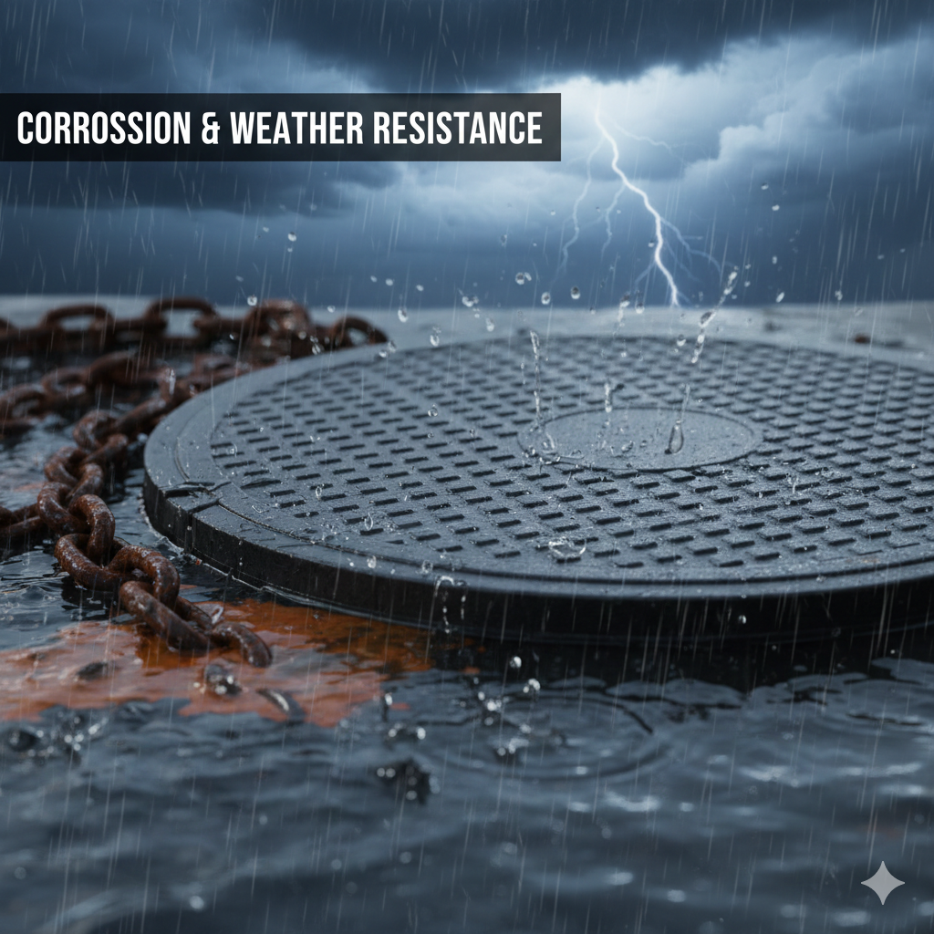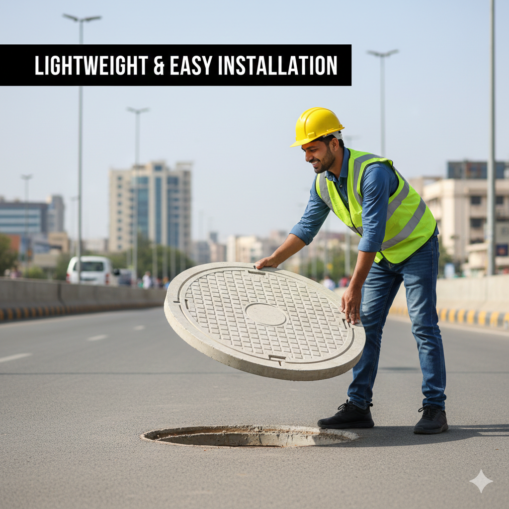 Plastic and FRP covers offer easy handling and quick installation while maintaining structural strength and safety standards.